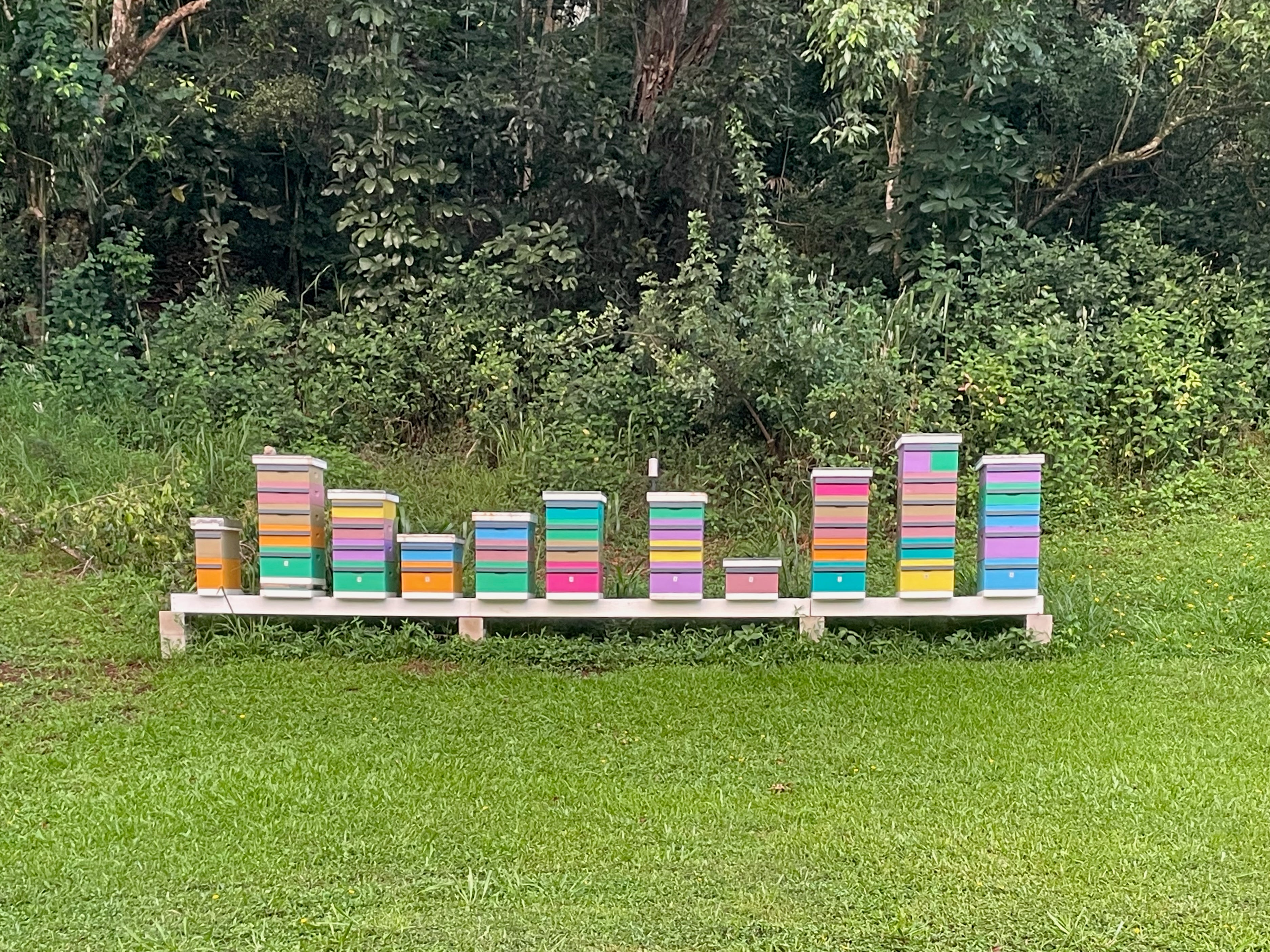 Our honey is produced by honey bees that forage the South side of Kaua'i year round. Honey is stored in honey supers, which can weigh as much as 40 lbs each.
